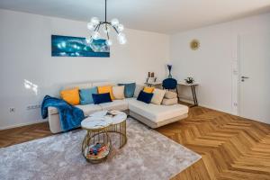 L’alloggio comprende tre camere da letto separate con sei posti letto totali e un soggiorno che offre ulteriori posti letto grazie al divano-letto. La cucina completamente attrezzata vanta elettrodomestici moderni come forno, piano cottura, microonde, lavastoviglie, frigorifero, macchina per il caffè e tostapane oltre ad angolo cottura completo di utensili da cucina e set per tè e caffè per una comoda preparazione dei pasti.
