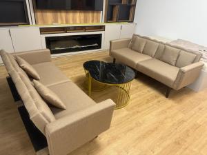 Accommodation comprises one bedroom and a separate living room featuring a fireplace and sofa bed for added comfort. The fully equipped kitchen contains essential appliances such as a stovetop, refrigerator, microwave, toaster, coffee machine, electric kettle as well as tea and coffee making facilities. Guests will find amenities like towels, bed linen, an iron and heating available throughout the apartment.