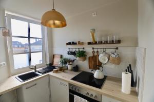 Die voll ausgestattete Küche beinhaltet Backofen, Kochfeld, Kühlschrank, Toaster, Kaffeemaschine, Wasserkocher sowie sämtliches notwendiges Kochgeschirr für Selbstverpflegung. Rauchmelder sorgen für Sicherheit, zudem steht kostenfreier Parkplatz auf dem Gelände zur Verfügung. Das Gebäude ist mit einem Aufzug ausgestattet und ermöglicht so einen barrierefreien Zugang zu allen Etagen.