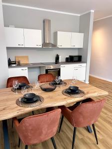 Gli ospiti possono usufruire di una cucina completamente attrezzata con forno, piano cottura, lavastoviglie, frigorifero, microonde, tostapane, macchina per il caffè e bollitore oltre agli utensili da cucina per una comoda preparazione dei pasti. L’area soggiorno dispone di riscaldamento, divano letto con opzioni di seduta sul divano e scrivania da lavoro. Sono inoltre forniti biancheria da letto, asciugamani, ferro da stiro e armadio per maggiore comfort.