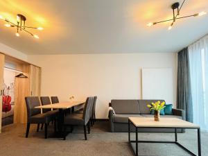 В этих просторных апартаментах имеется одна гостиная и две отдельные спальни с общим числом трех спальных мест. Для гостей оборудована полностью оснащенная мини-кухня с плитой, холодильником, кухонной утварью, тостером, кофемашиной и электрическим чайником. В ванной комнате есть ванна и личные удобства. Среди удобств номера - телевизор с плоским экраном и кабельными каналами, стиральная машина, раскладной диван, зона отдыха, детская кроватка по запросу, шкаф для одежды, полотенца и постельное белье, звукоизоляция стен обеспечивает дополнительный комфорт.
