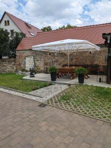 Ubicado a 5 km de Messe Dresden, Ferienhaus -Am alten Dorfplatz- es una casa vacacional en Dresde situada en un edificio histórico. La propiedad cuenta con una habitación y ofrece vistas al jardín y a una calle tranquila, complementadas por una chimenea exterior.