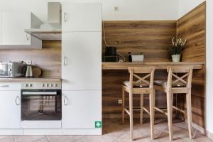 Apartmán obsahuje jednu ložnici a plně vybavený kuchyňský kout vhodný pro vaření i skladování potravin. Pro pohodlí během chladnějších měsíců zde najdete topení, pračku pro potřeby praní prádla a zábavu zajišťuje televizor s plochou obrazovkou.