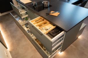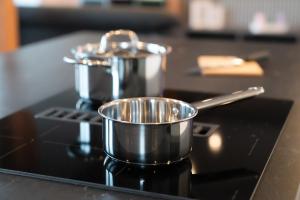 Die geräumige Wohnung umfasst ein Wohnzimmer, zwei Schlafzimmer sowie ein Badezimmer mit begehbarer Dusche und Badewanne für zusätzlichen Komfort. Die Küche ist vollständig ausgestattet mit Kochfeld, Küchenutensilien, Esstisch sowie gemeinschaftlich genutztem Küchenzugang zur Zubereitung von Mahlzeiten. Weitere Annehmlichkeiten sind Handtücher, Bettwäsche, Heizung, Kleiderschrank oder Schrankfläche, Sitzbereich mit Sofa und Schlafsofa sowie ein Flachbildfernseher.