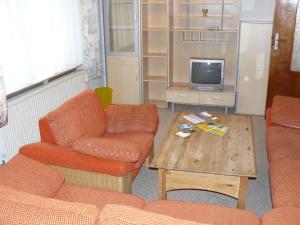 Die Gäste können Mahlzeiten in der voll ausgestatteten Küche zubereiten. Diese beinhaltet moderne Geräte wie Ofen, Herdplatte, Mikrowelle, Toaster, Kühlschrank, Geschirrspüler sowie Kaffeemaschine und Wasserkocher, außerdem ist sämtliches notwendige Kochgeschirr vorhanden. Ein Esstisch für gemeinsame Mahlzeiten im Innenbereich steht ebenfalls zur Verfügung. Das Wohnzimmer bietet Unterhaltung durch Kabel-TV auf einem Flachbildschirm. Auf dem Balkon mit Blick auf den Garten befinden sich Außenmöbel sowie ein Essbereich im Freien zum entspannten Speisen unter freiem Himmel.