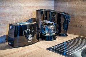Tento jednopokojový apartmán má plně vybavenou kuchyň s troubou, varnou deskou, lednicí, toustovačem, kávovarem, rychlovarnou konvicí a jídelním stolem. Obývací část obsahuje rozkládací pohovku se sedací soupravou a televizor s plochou obrazovkou. Další vybavení zahrnuje ručníky, ložní prádlo, topení, šatní skříň nebo úložný prostor, pracovní stůl a dětskou postýlku.