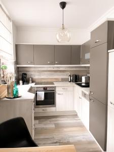 Zur Ausstattung gehört eine voll ausgestattete Küche mit Backofen, Herdplatte, Kühlschrank, Geschirrspüler sowie Kaffeevollautomat und Wasserkocher inklusive sämtlicher Kochutensilien zur einfachen Zubereitung von Mahlzeiten. Weitere Annehmlichkeiten umfassen einen Flachbildfernseher mit Zugang zu Streaming-Diensten wie Netflix, Heizung, Bügeleisen, Schlafsofa, Kleiderschrank, Fliesenboden, Steckdosen am Bett, Reiseadapter, Babybett auf Anfrage sowie Terrassenmöbel zur Entspannung im Freien.