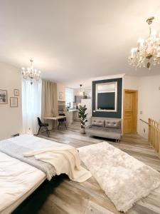 Das Studio besteht aus einem Schlafzimmer mit zwei Betten sowie einem Sitzbereich und einem Arbeitstisch für zusätzlichen Komfort. Das Badezimmer verfügt über eine bodengleiche Dusche ohne Stufen, Föhn, Hausschuhe, Shampoo, Conditioner sowie WC-Anlagen, Handtücher werden bereitgestellt.