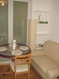 Im Apartment erwartet die Gäste ein Schlafzimmer mit schallisolierten Wänden sowie eine Sofaecke. Die voll ausgestattete Küche beinhaltet einen Backofen, Mikrowelle, Herdplatte, Kühlschrank, Toaster und Wasserkocher sowie Tee- und Kaffeezubereitungsmöglichkeiten inklusive Küchenutensilien und Esstisch. Weitere Annehmlichkeiten sind Heizung, Kleiderschrank oder Schrankraum, Bügelmöglichkeiten einschließlich Bügeleisen und -brett, Bettwäsche, Handtücher, Waschmaschine, synthetische Kissen ohne Daunenfüllung, Parkettboden, Wäscheständer, auf Wunsch Kinderbett oder Babyreisebett sowie Steckdosen am Bett für mehr Komfort.