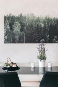 Ubytování zahrnuje samostatnou ložnici a obývací pokoj vybavený dvěma lůžky a rozkládací pohovkou pro větší pohodlí. Hosté mají k dispozici kuchyňský kout s varnou deskou, troubou, mikrovlnnou troubou, lednicí, kávovarem, rychlovarnou konvicí, toustovačem a kompletním nádobím včetně zařízení pro přípravu čaje i kávy. Součástí je také jídelní stůl.