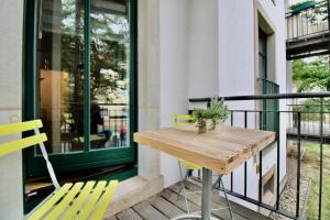 Guests benefit from free WiFi available throughout the property alongside flat-screen TV with streaming services for entertainment options. Outdoor features include a balcony overlooking quiet street views furnished with outdoor dining furniture suitable for relaxation or meals outside while enjoying access through a private entrance to this smoke-free apartment.
